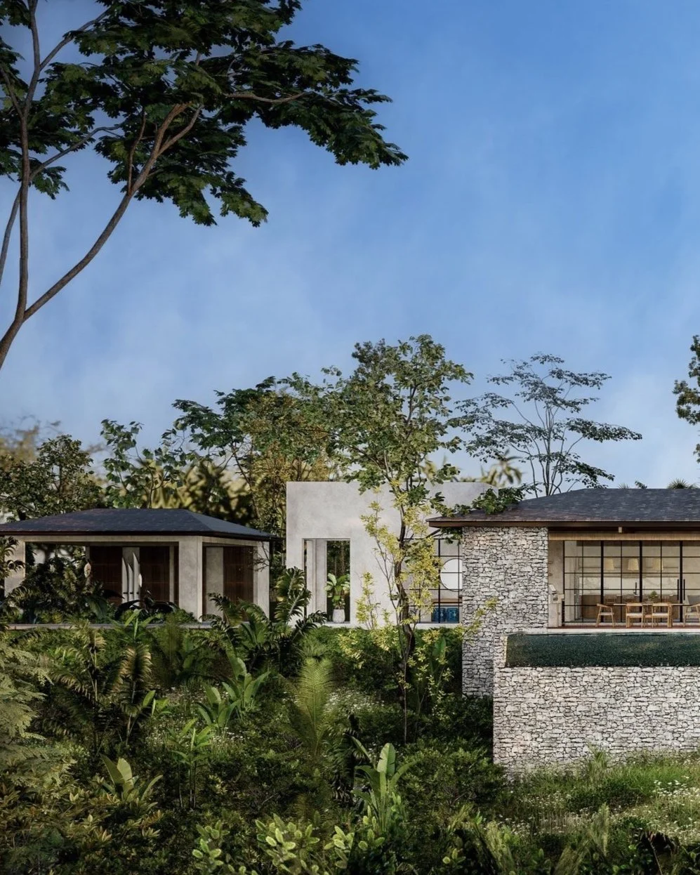 A design inspired by a neutral color palette and earth tones seamlessly complements the surrounding nature, enhancing rather than competing with it.
